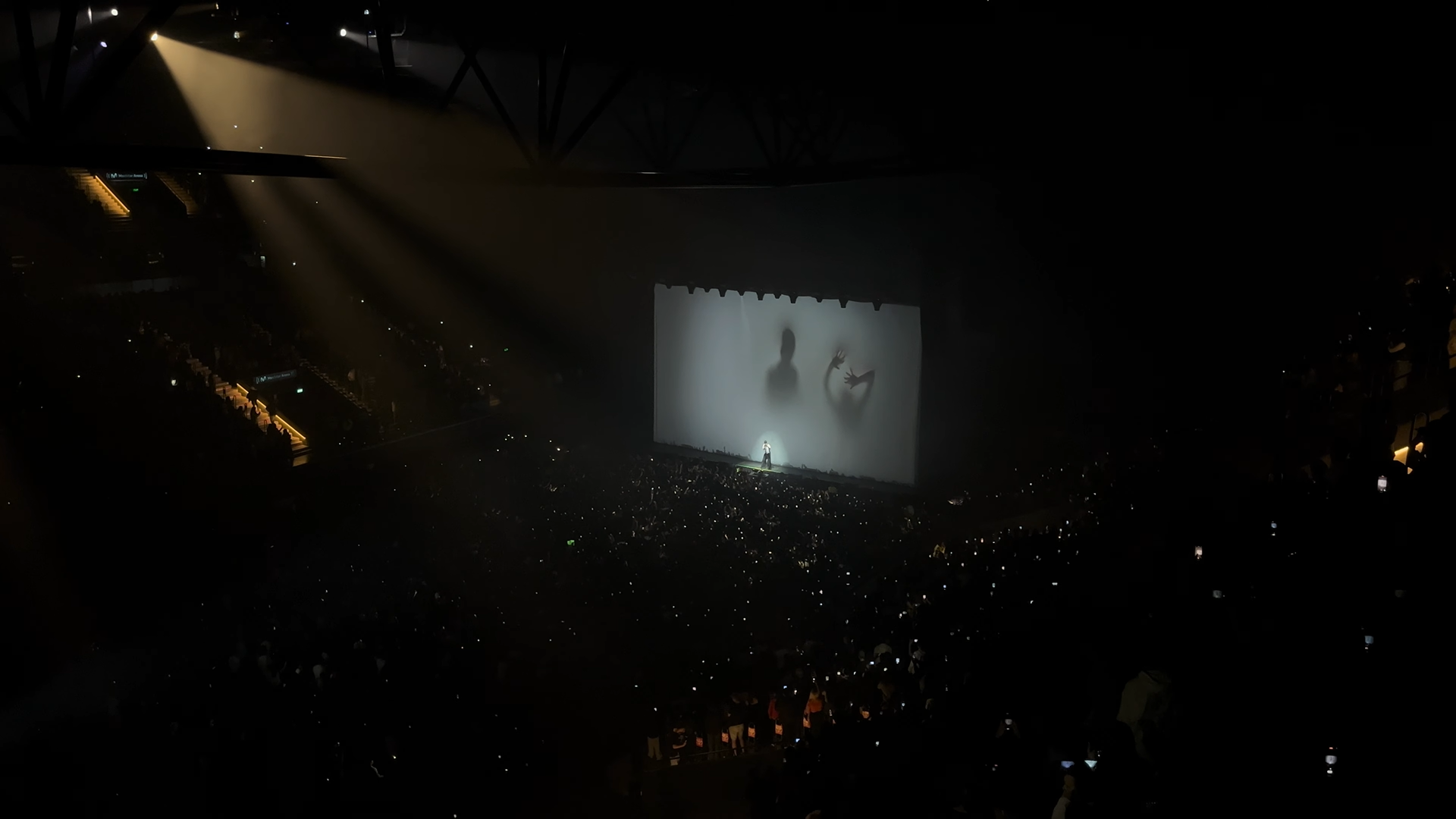 Diseño técnico de puesta y operación en vivo junto a Malén Bruna para proyector y pantallas LED en los shows de Milo J en el Movistar Arena en Marzo de 2024